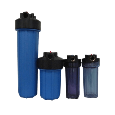 De 10” y 20” de longitud por 2.5” de diámetro con rosca de ¾” en color azul y transparente.