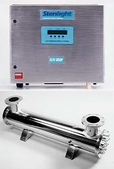 The SUV 800P high flow commercial/industrial sterilizer is designed for applications requiring a 99.99% reduction of bacteria and viruses. This process is accomplished without adding any potentially harmful chemicals to your drinking water. Sterilight is the most ecological way of treating your water!